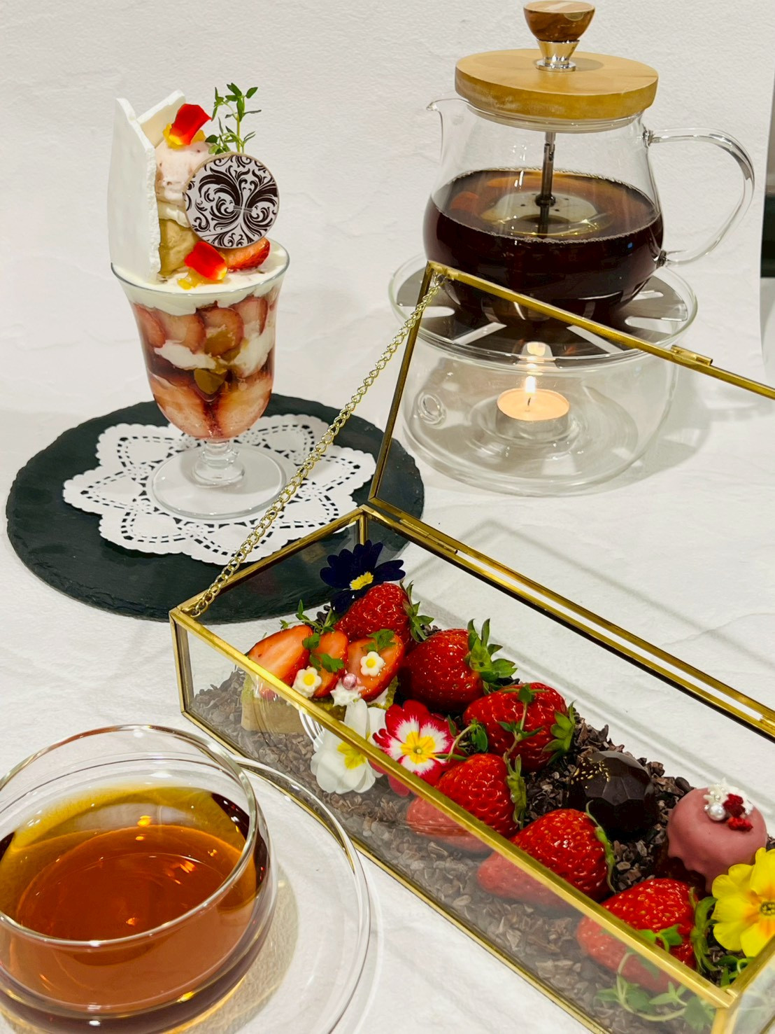 苺パフェに苺満喫セットが登場 ✼••┈┈┈┈••✼••┈┈┈┈••✼ ◆Coffret a Bijoux (コフレ・ア・ビジュ) ¥3,500(税込) 現在販売中の苺... -