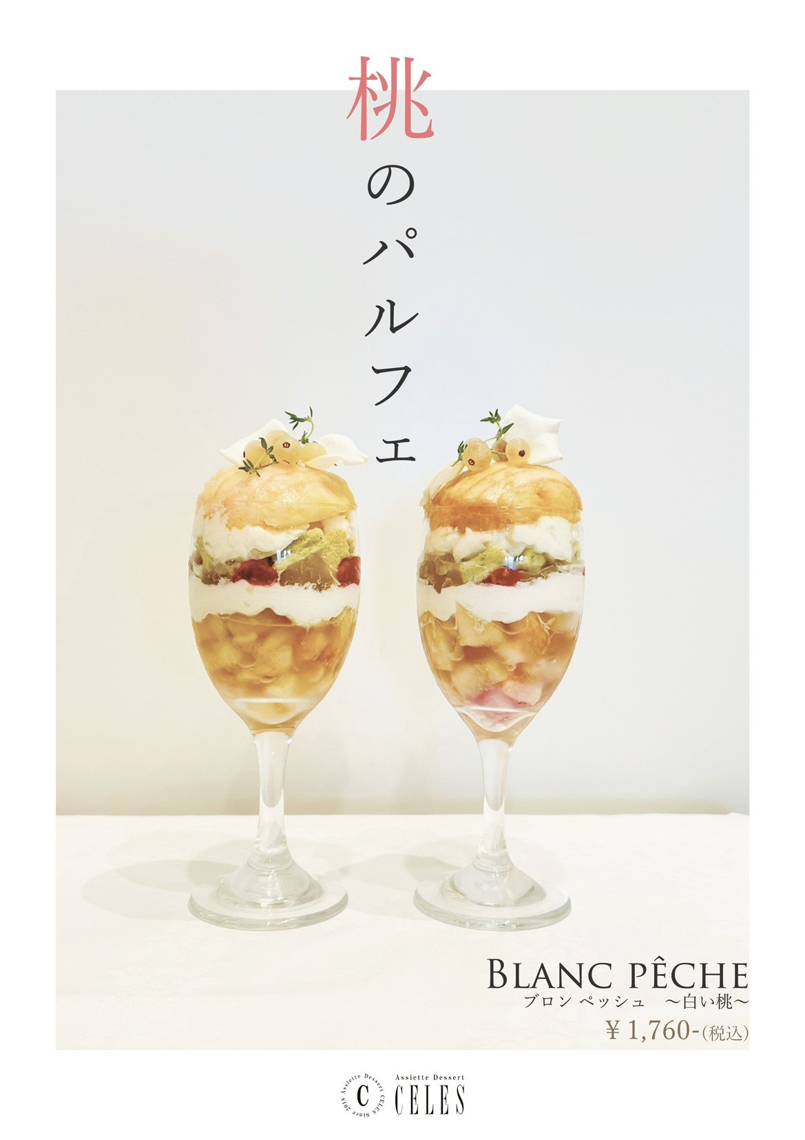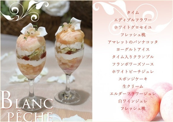 ブロン ペッシュ ~白い桃~ ¥1,760(税込) 山梨県産の旬の桃を 約1個分使用したパルフェ テーマは【白】 アマレット香るパンナコッタや タイムのクランブル ... -