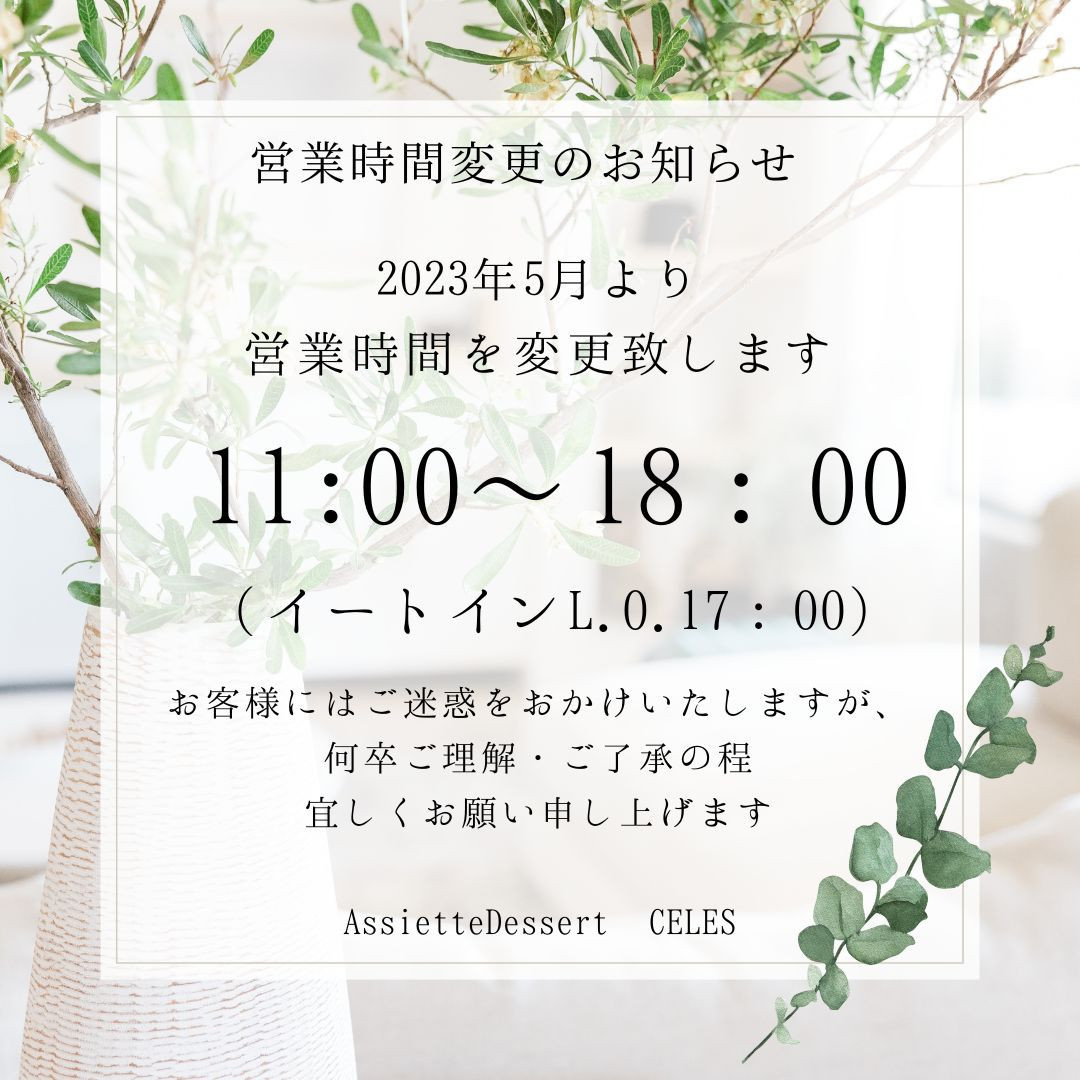 いつもセレスカフェをご利用いただき 誠にありがとうございます。 誠に勝手ながら 5月1日(月)より、 下記の営業時間に変更致します。 open⇒11:00 clese⇒18:0...