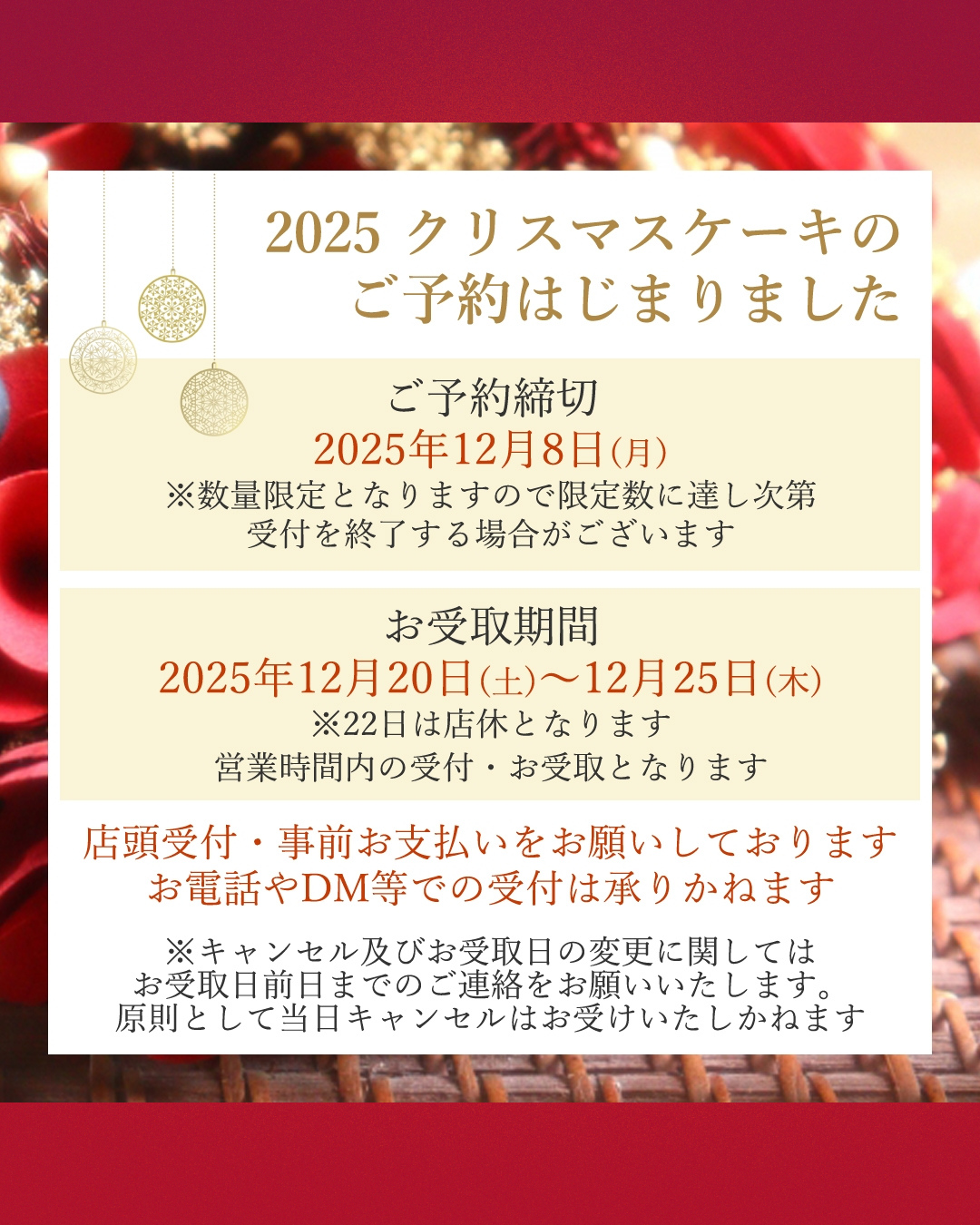 • ≪Xmasケーキのご予約方法と期間のご案内🎄≫