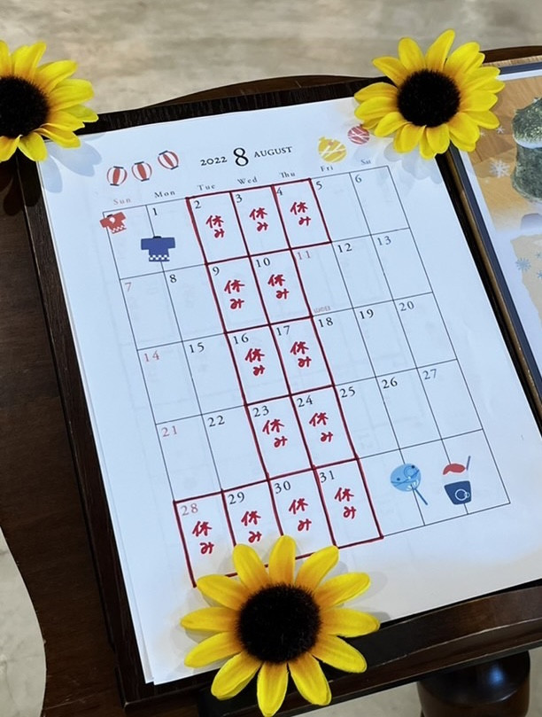 8月の営業カレンダーのお知らせです