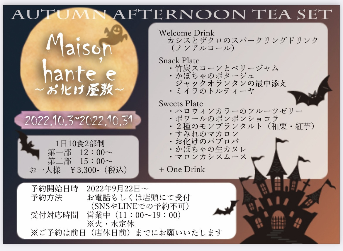 来月10月3日より、ハロウィンアフタヌーンティーの販売を致します!