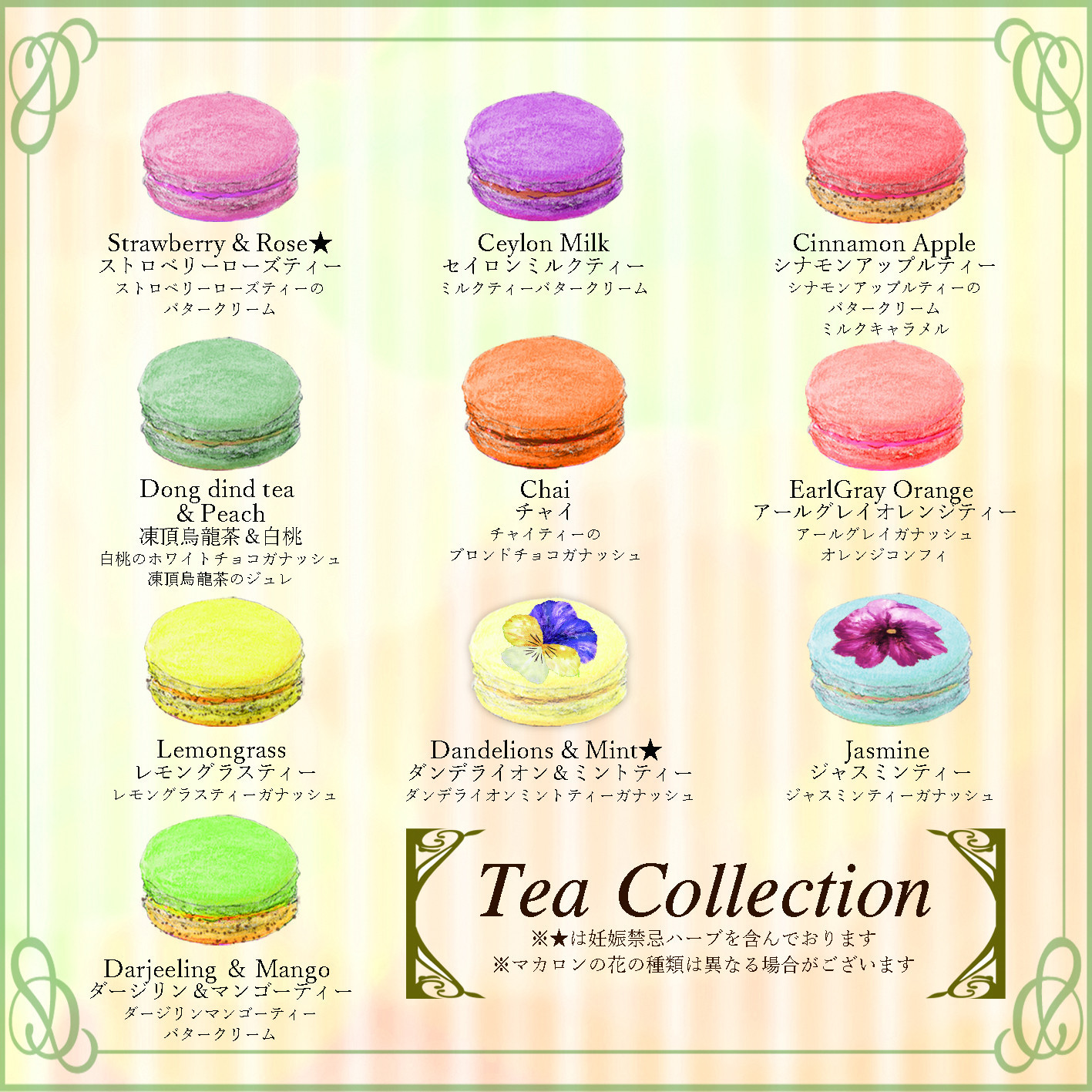 セレスカフェでは 5月6日より、 お茶をテーマにしましたフレーバーのマカロン10個入りセットを 販売スタート致しました! 紅茶だけでなく、ハーブティーや 烏龍茶など、様々なお茶を マカロ...