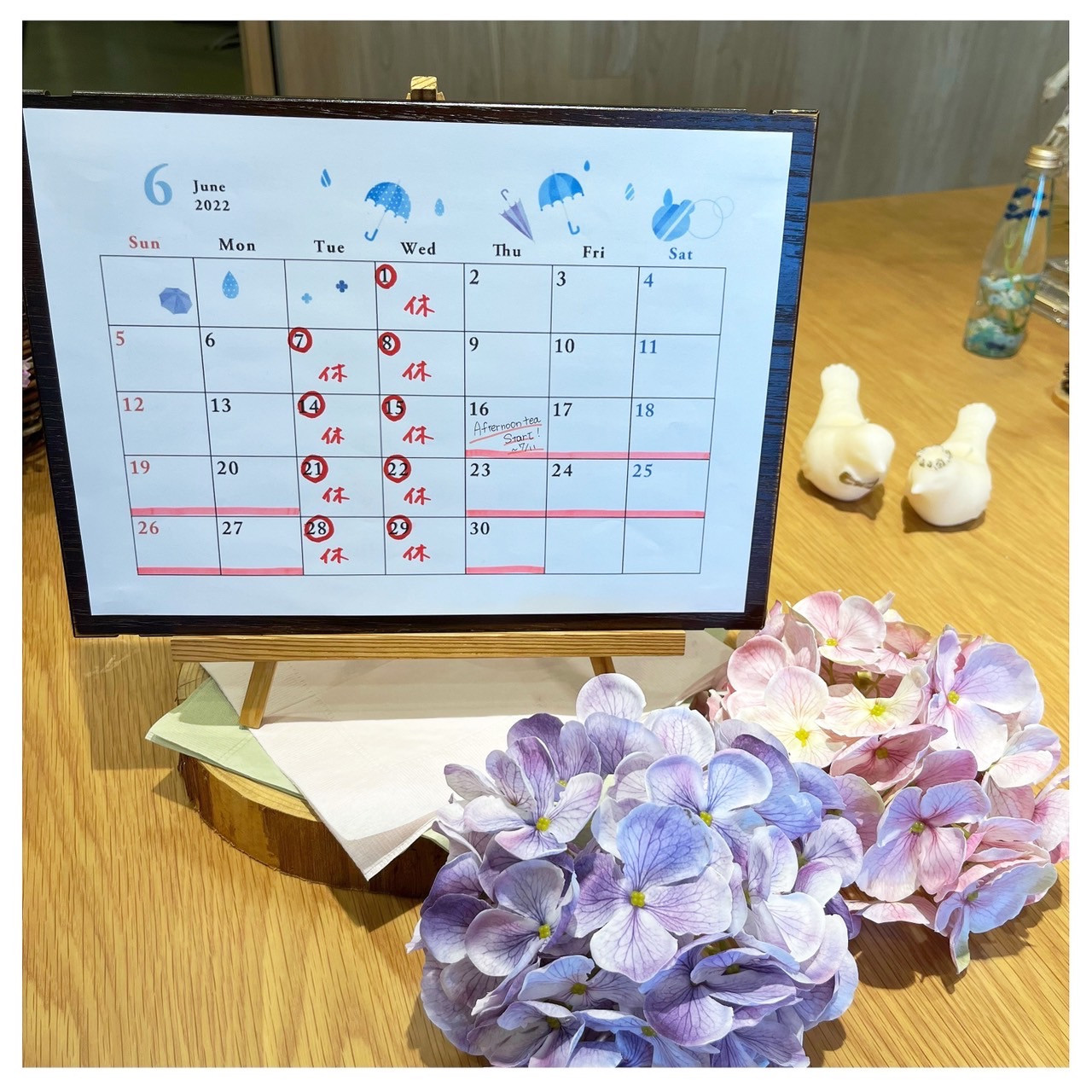 6月も変わらず毎週火曜・水曜と定休日となります。
