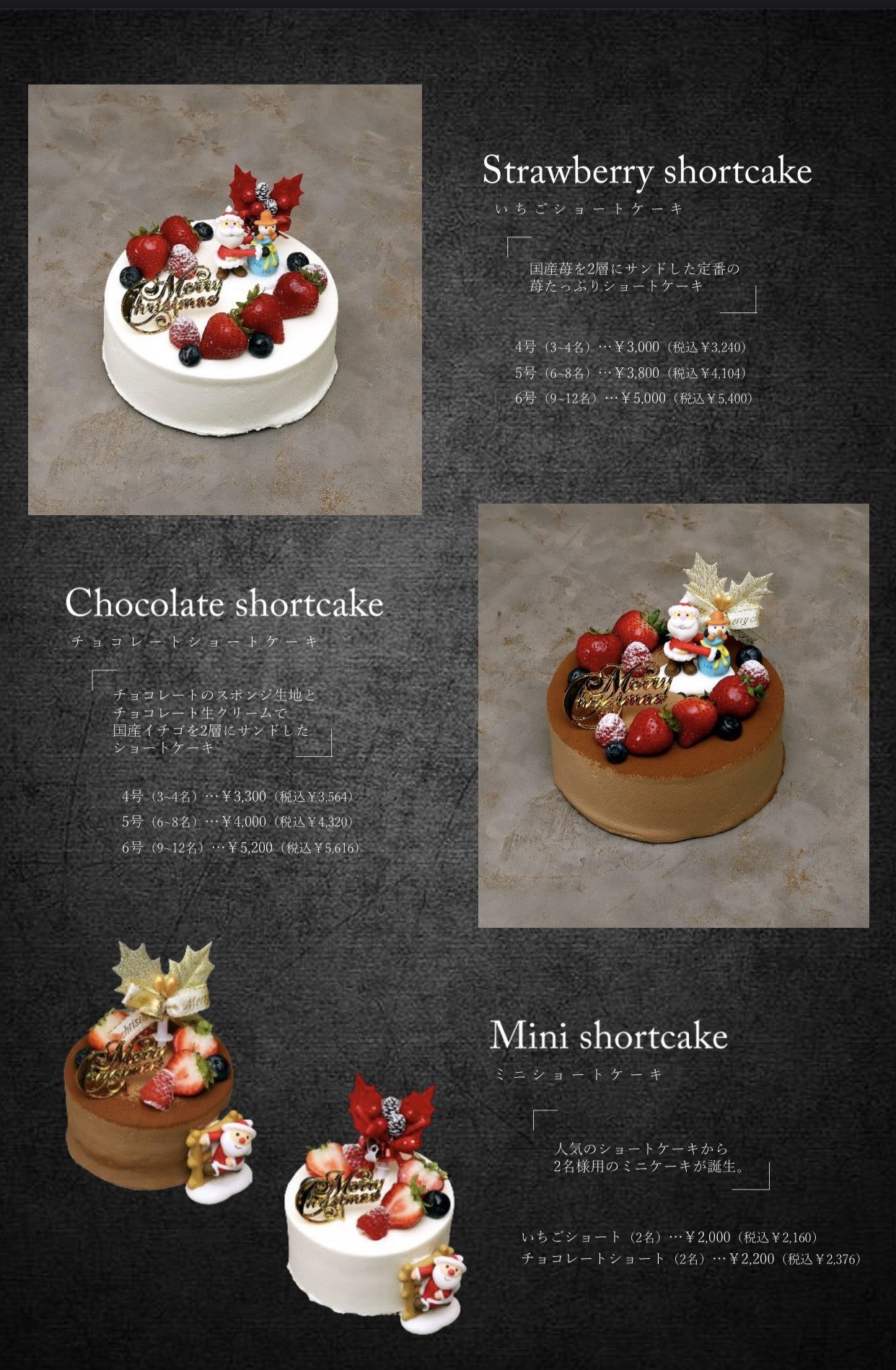 当店のクリスマスケーキは予約制となりますので、
