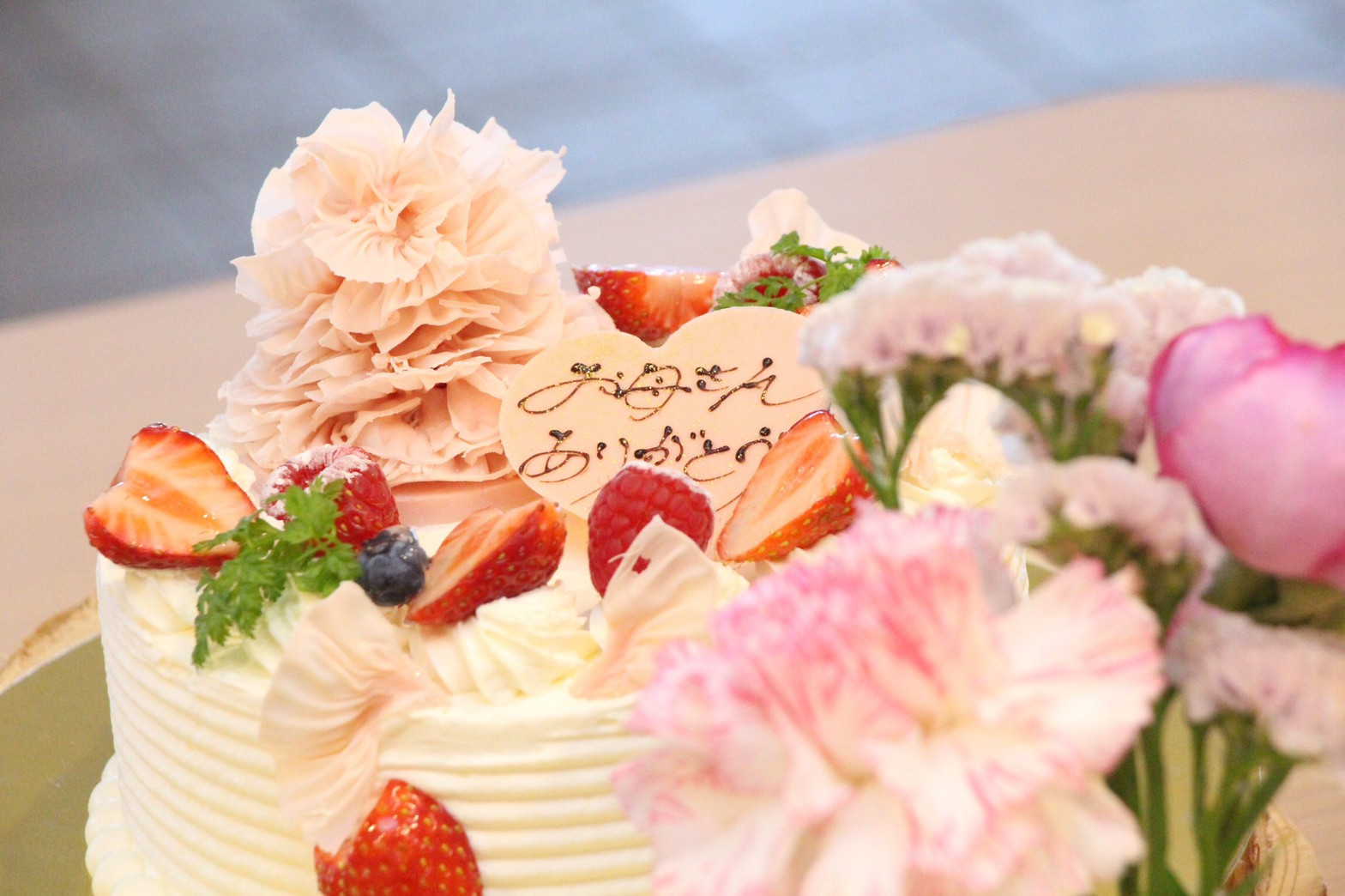 当店のブーケ付きのケーキ 感謝と共に渡してみませんか☺️?