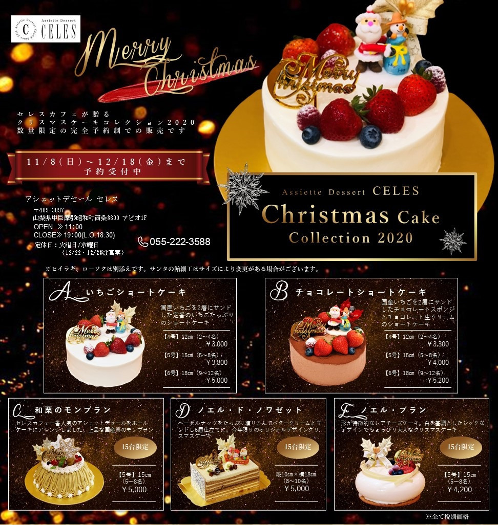 セレスカフェのクリスマスケーキ今年も好評予約受付中です!