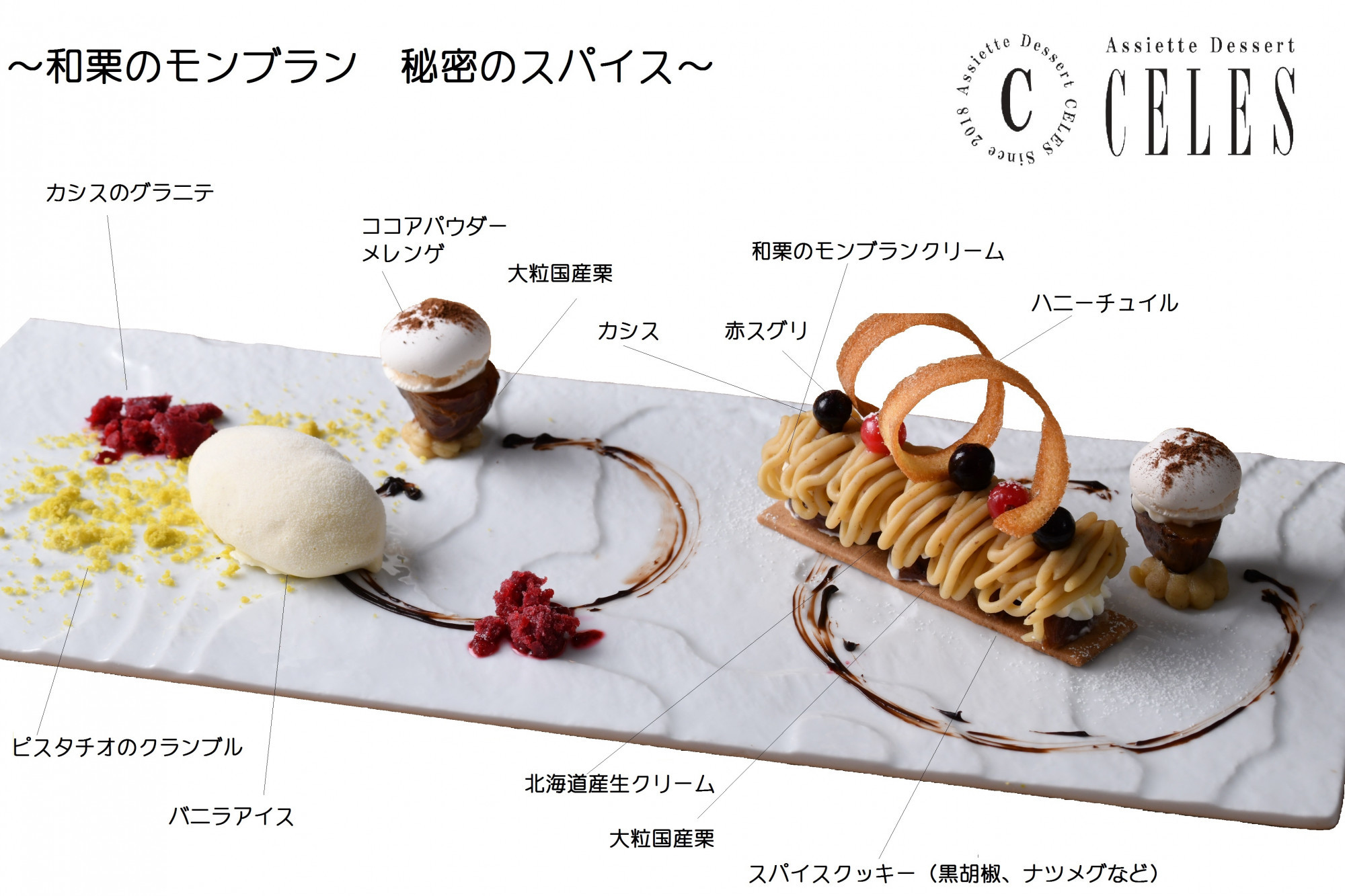 秋の代表的な味覚【栗】をテーマにしたアシェットデセール セレスカフェの定番商品です!! オープン当初から愛されるこの自慢の一品です!! 上品な甘さの国産栗をペーストにしモンブランクリームに ...