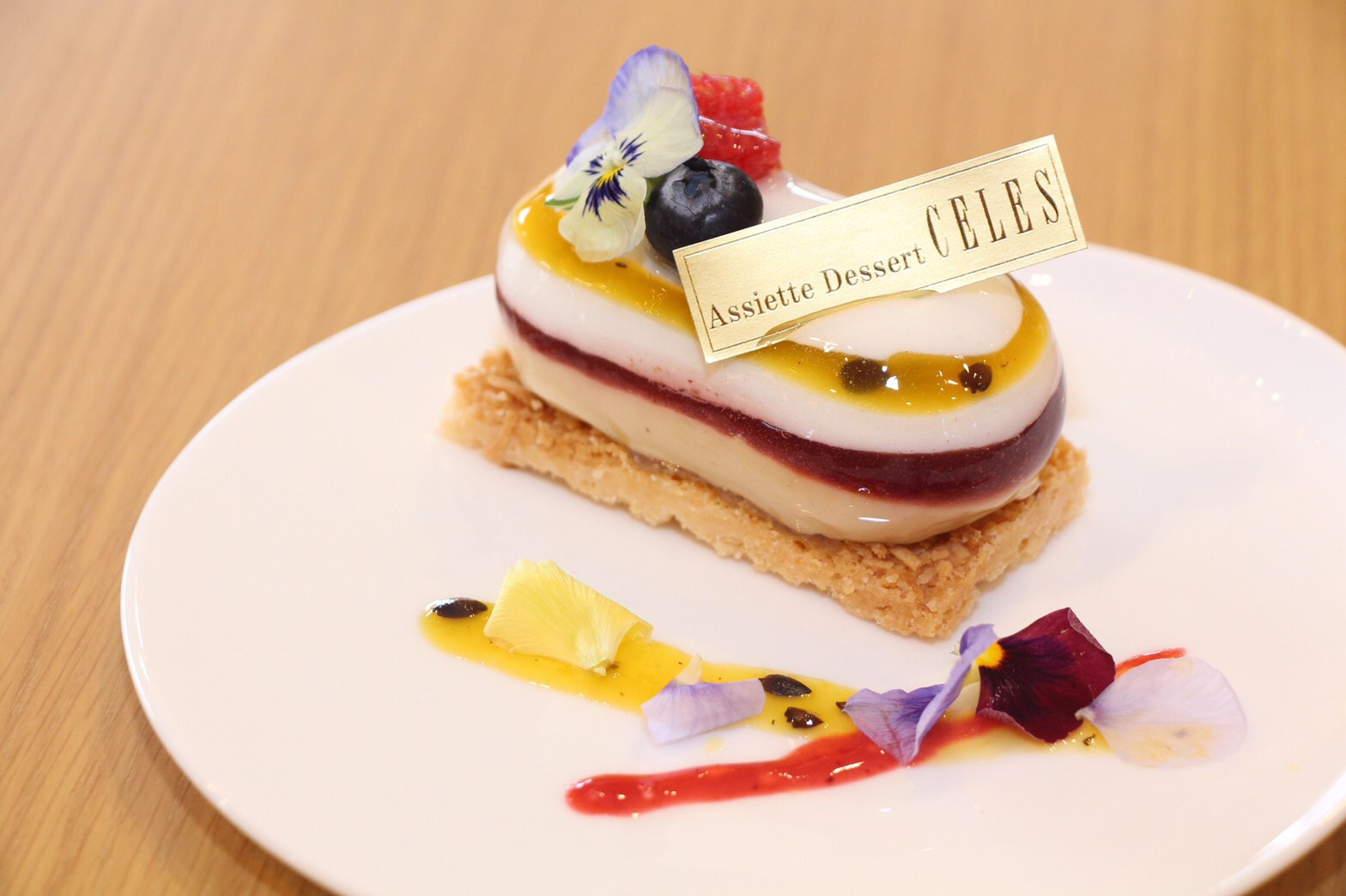 ココナッツとパッションフルーツのムースにジャスミンの香りをまとわせたケーキです。見た目も鮮やかに涼やかに!