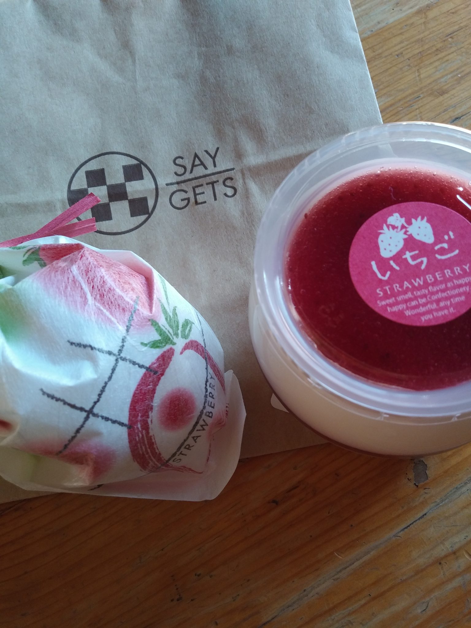 期間限定でいちごフェアをやっていました。写真はいちご大福といちごティラミス。いちご大福はつぶあんでしたが、こしあんに近い滑らかな食感でした。いちごティラミスは、いちごソースが濃厚で、とても軽い食感で美味しかったです。