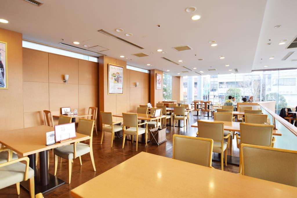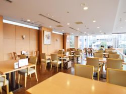 甲府記念日ホテルのエントランス横に位置する明るい雰囲気のカフェレストラン。