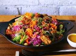 次におすすめしたいメニューはこれ。ボリュームも栄養もたっぷりのごちそうサラダは、植…
