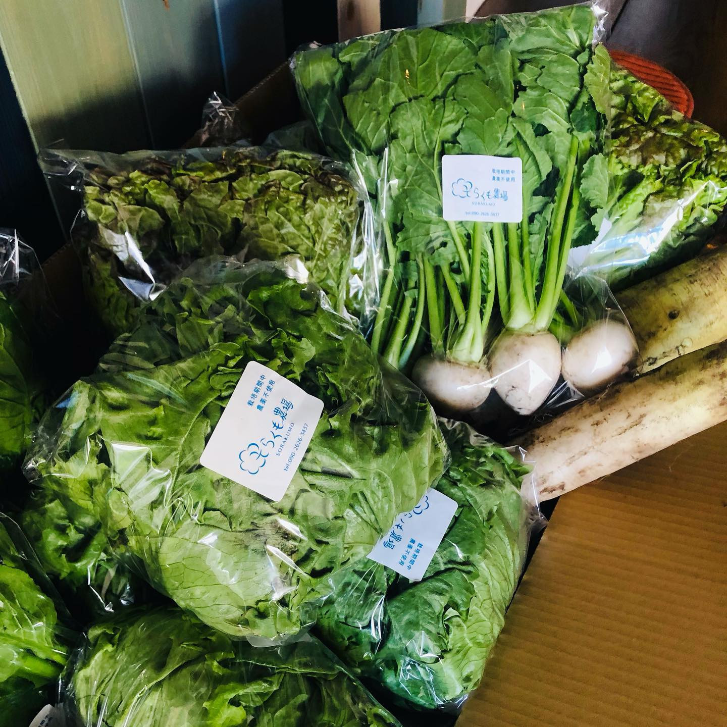 ◯写真はお世話になってるそらくも農場さんのお野菜。箱を開けると、そらくもさんの豪快な笑顔が一緒に飛び出してくるような元気でおいしいお野菜です🥬🥬🥬