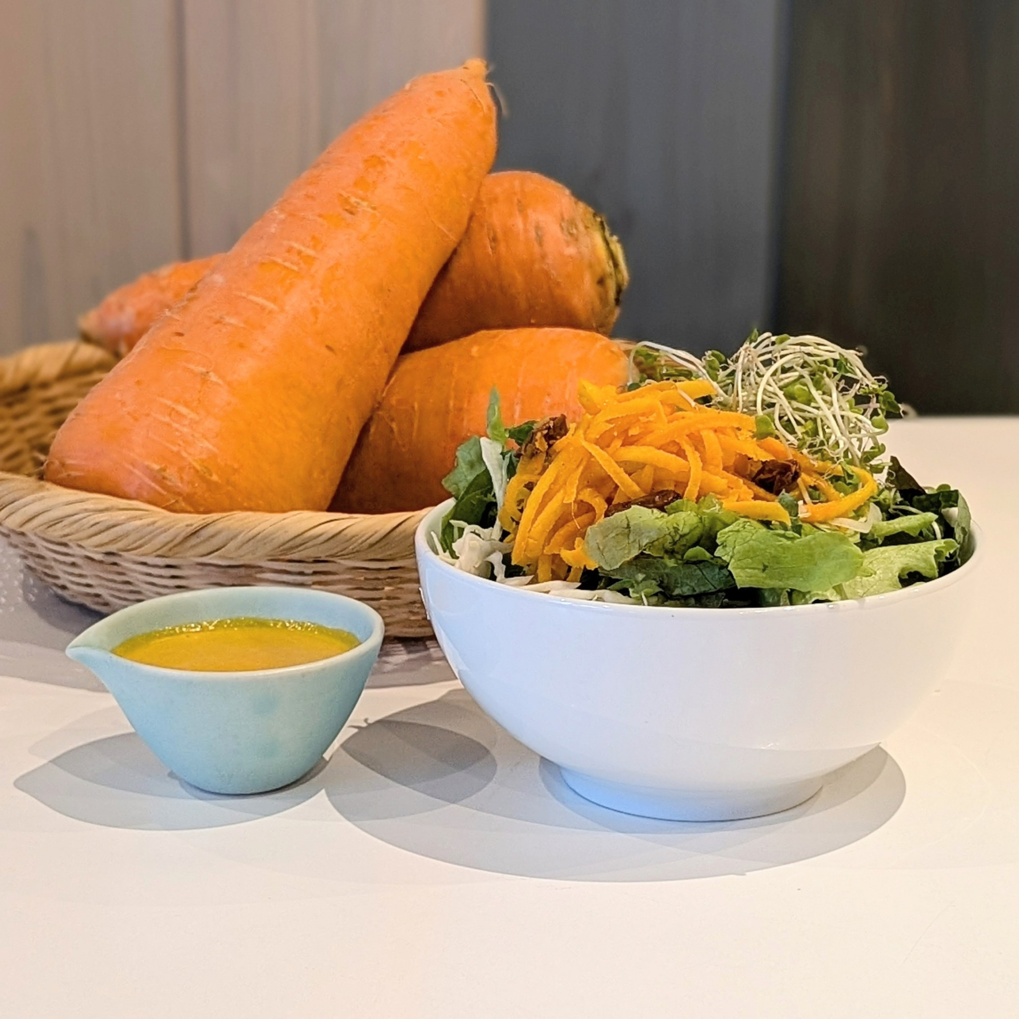ちなみにフルウントボウルと単品サラダ(写真)には、人参のラペと人参のドレッシングを使っています🥗🥕