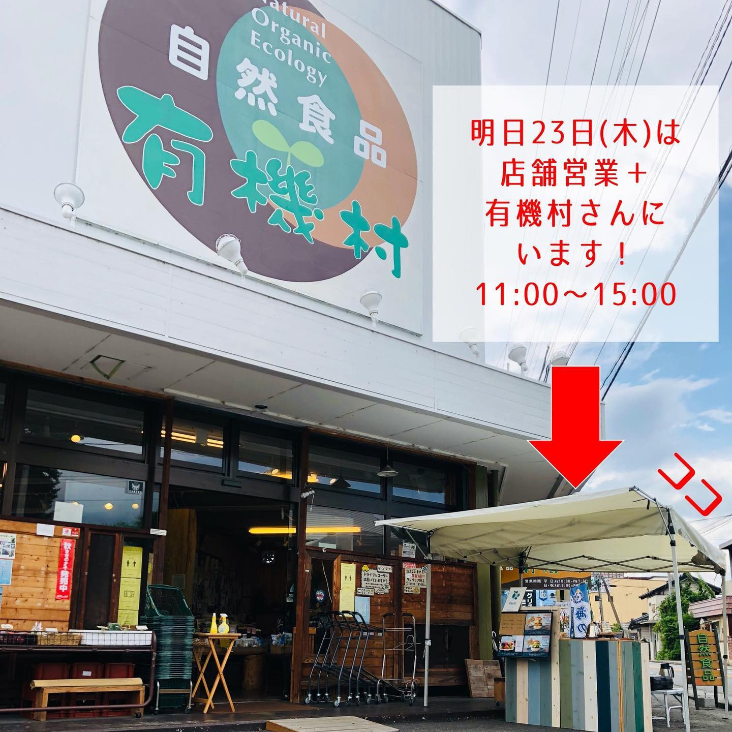 明日7/23(木・祝)はいつもお世話になっている有機村さんで出張販売させていただきます🎪