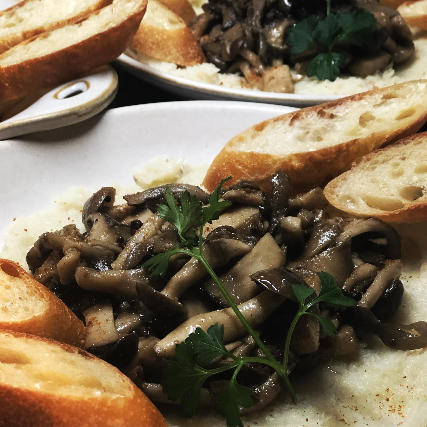 写真は昨夜のディナーでお出しした、マッシュドカリフラワーときのこのスパイスソテーを合わせた一皿🍄