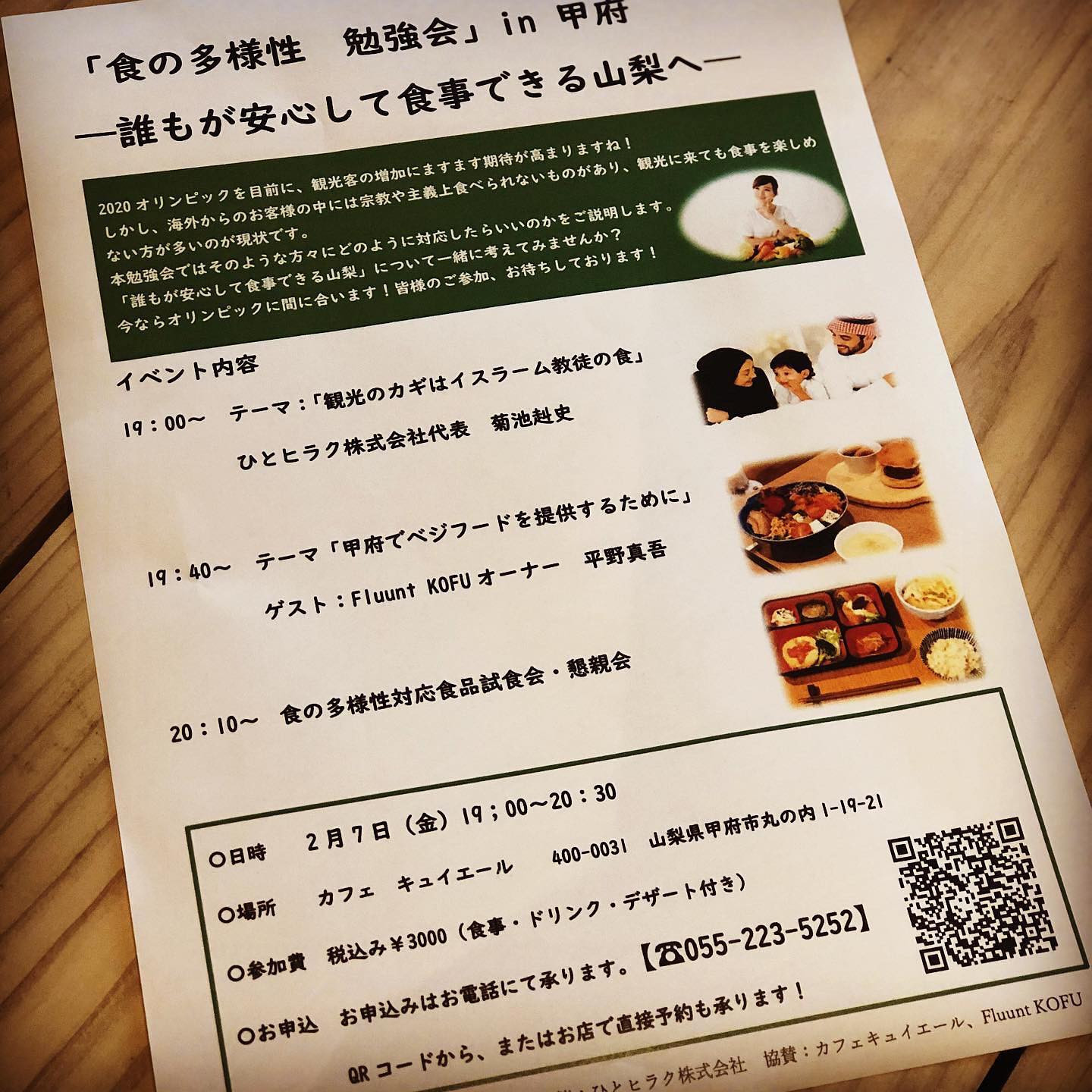 今夜はキュイエールさんで、ひとヒラク株式会社さん主催の「食の多様性 勉強会」が開催されます。そちらでも店主が少しお話させていただくことになってますので、よろしればぜひぜひー!ハラル&ベジ対応のお食事付きだそうです。