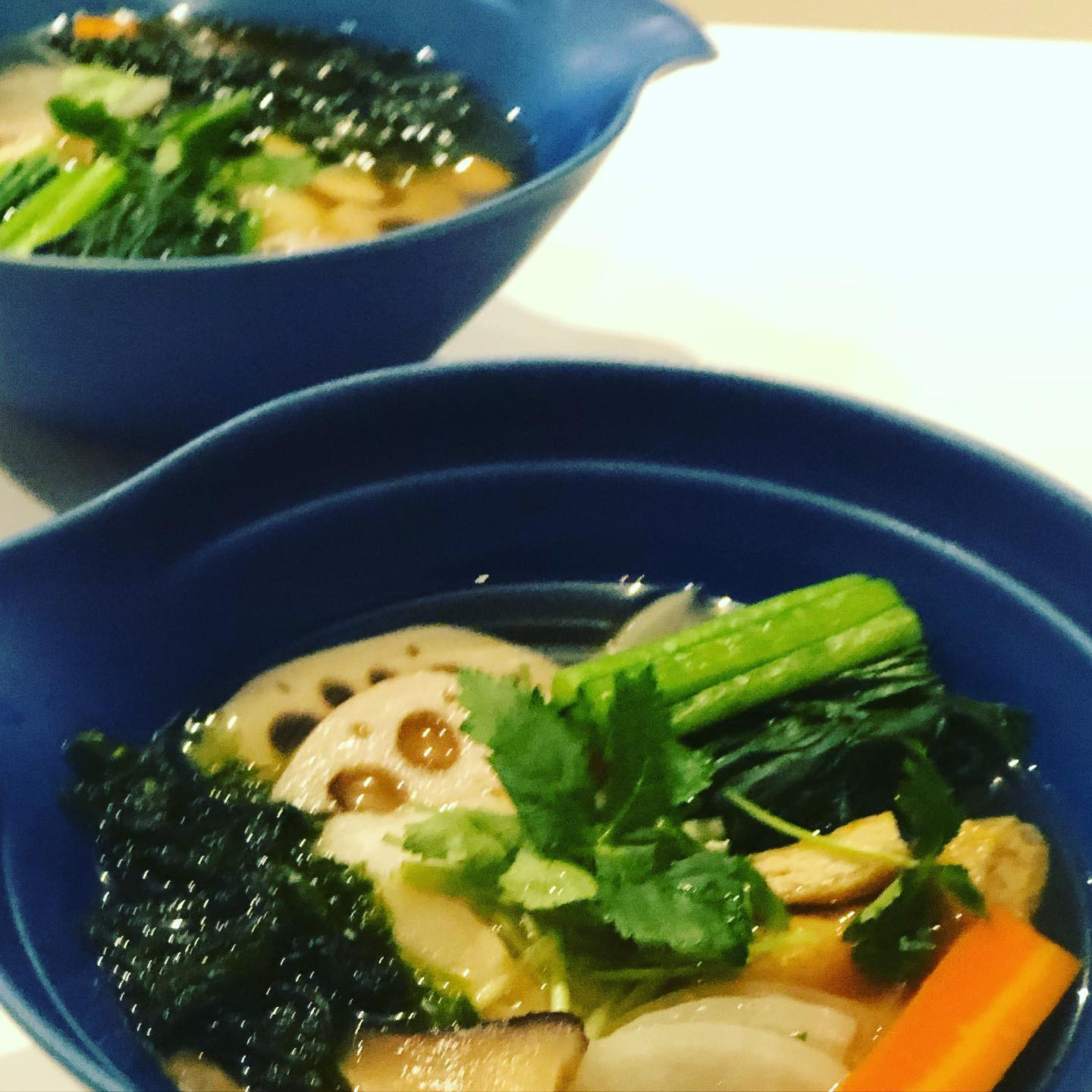 ややピンぼけの写真は、昨日のまかないのお雑煮。大好きなそらくもさんのお餅で◯