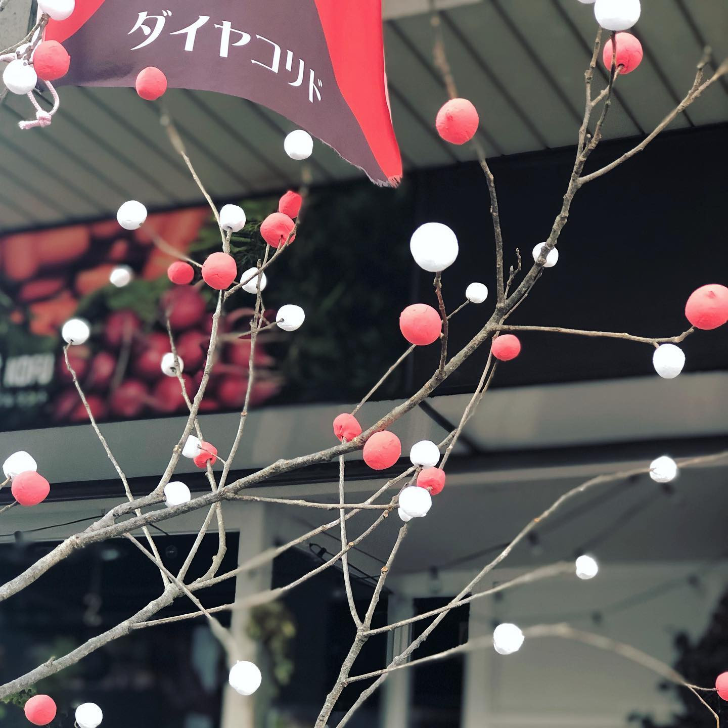 今年も繭玉飾りで通りがカラフルになりはじました🔴⚪️🔴⚪️🔴