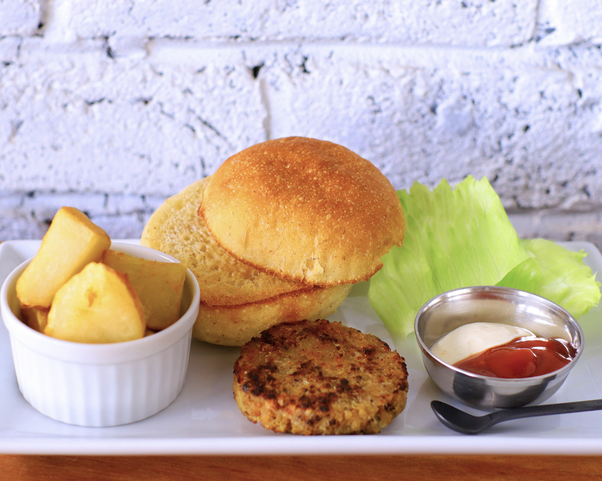 自分で挟めたら楽しいかなと思ったのと、味の濃さを調整できるよう、バーガーは組み立てていません。