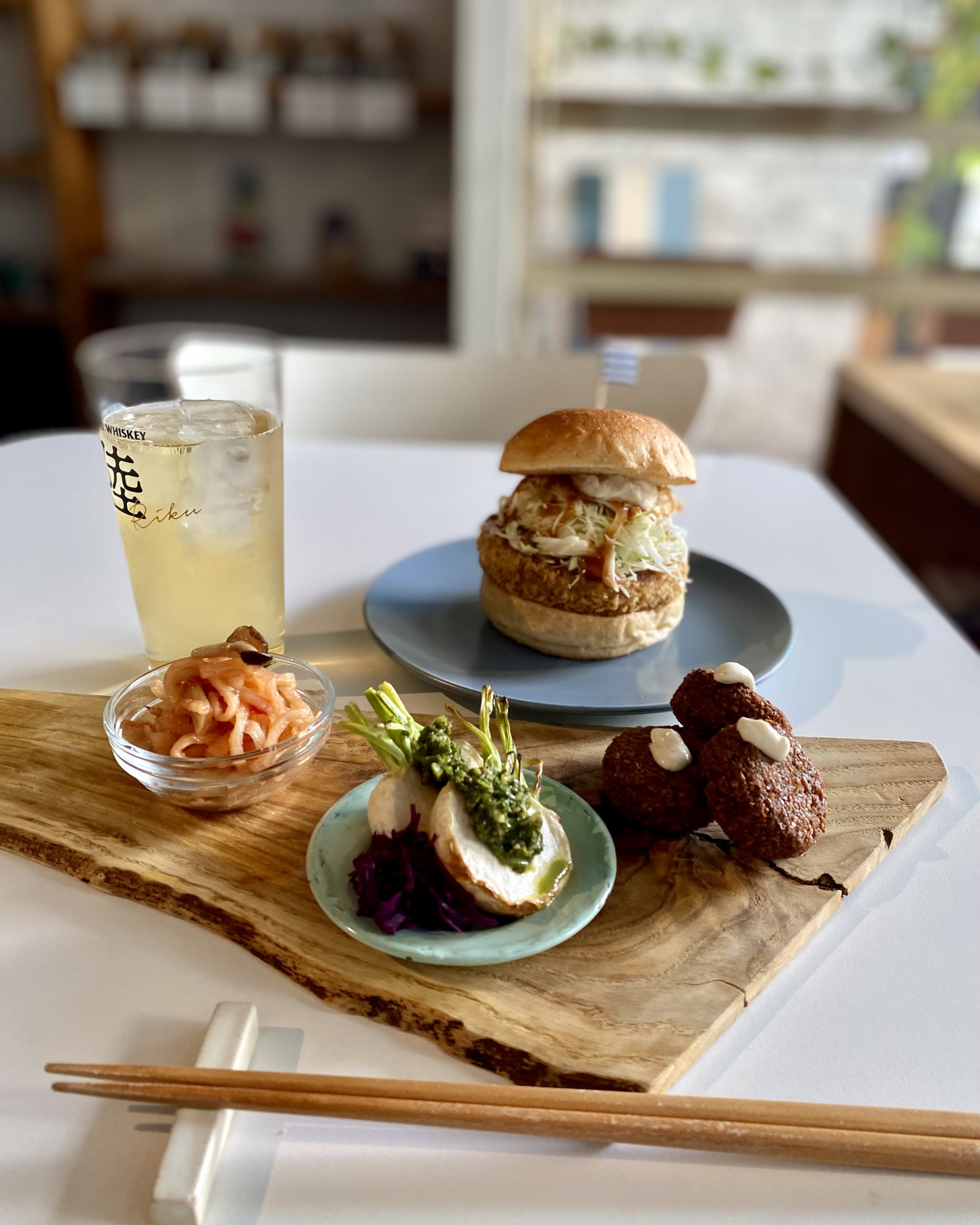その日も天気の良い日の夕方で、なんともハイボールと車麩カツバーガーの組み合わせが美味しそうでした!