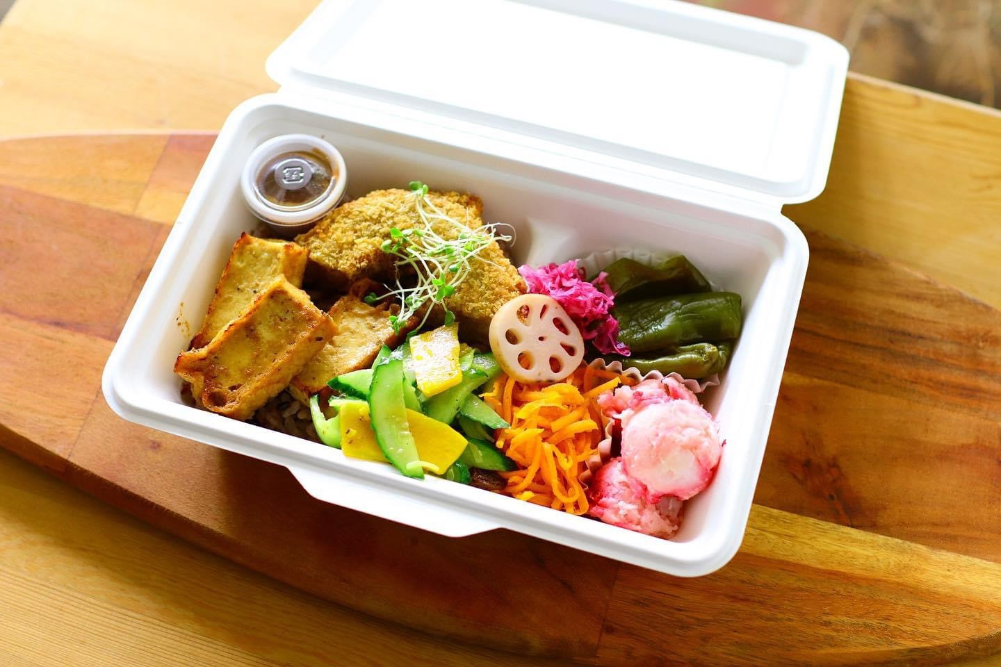 ・フルウントボウル 1,200円 ・ヴィーガンバーガーセット 1,300円 ※全て税込 |