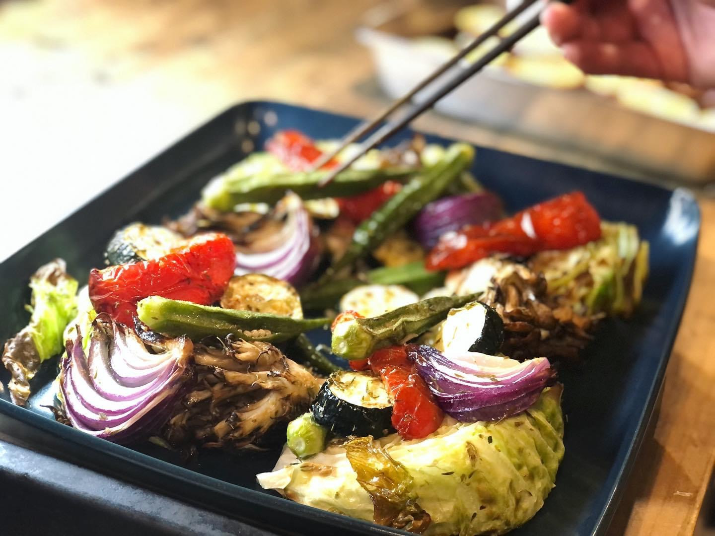 写真はディナーでご用意している野菜のロースト。オリーブオイル、ブラックソルト、ハーブで味付けすることが多いです🧅🥕🥦