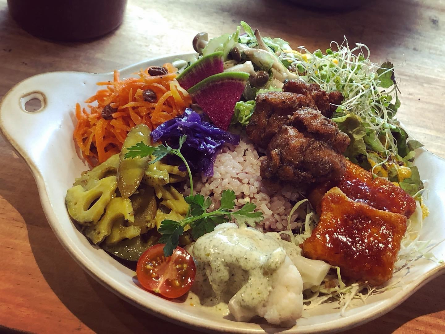 ・フルウントボウル 1,200円 ・ヴィーガンバーガーセット 1,300円 ※全て税込 |
