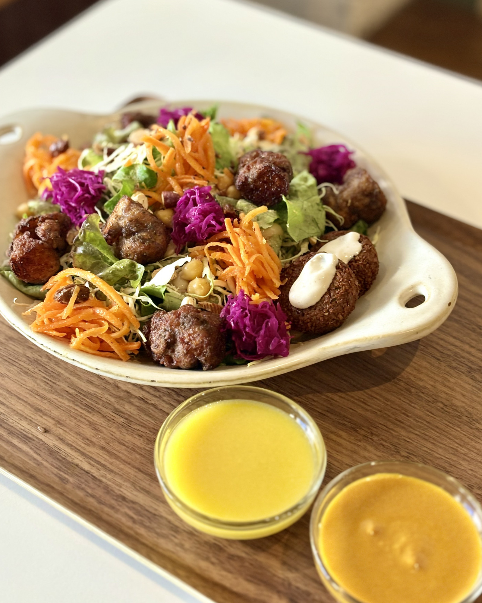 トッピングでファラフェルや、豆腐ナゲットもつけれます。