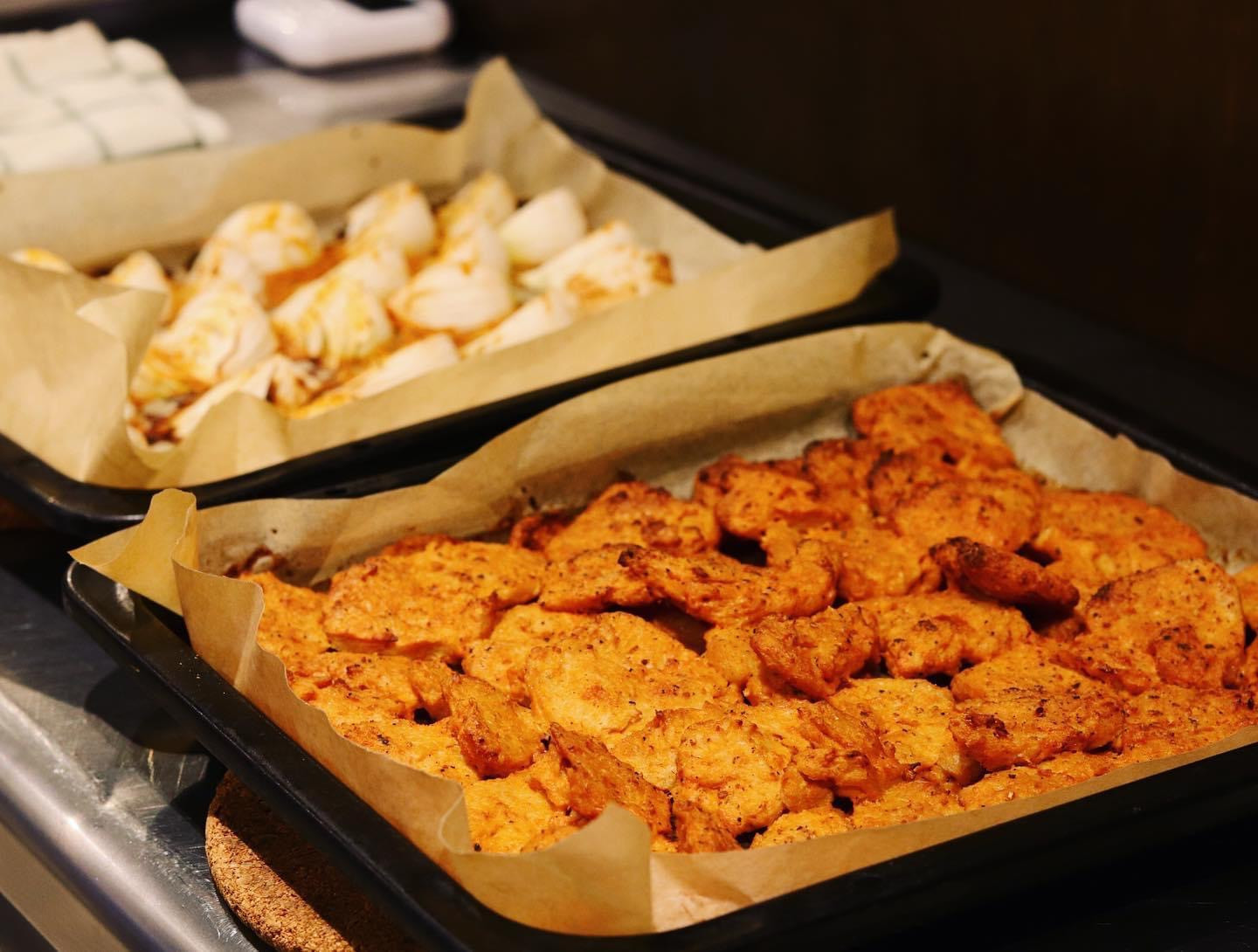 写真はソイミートのティッカ。ソイヨーグルトベースのタレに漬け込んで焼いた、スパイスの香りがたまらんメニュー🤤今日もフルウントボウルにのってます。