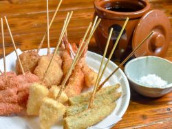 ・串揚げ1本 100円~ ・だし巻き玉子 780円 ・飲み放題2h 2,000円~ ・コース(要事前予約)1人 2,000円~ ※全て税込み |