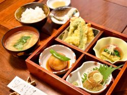 落ち着いた空間の店内では、地産地消にこだわった食材や隣接している豆腐工房の作りたて豆腐を使用したランチを提供。時期によって提供メニューが変わるため何度でも足を運びたくなる。