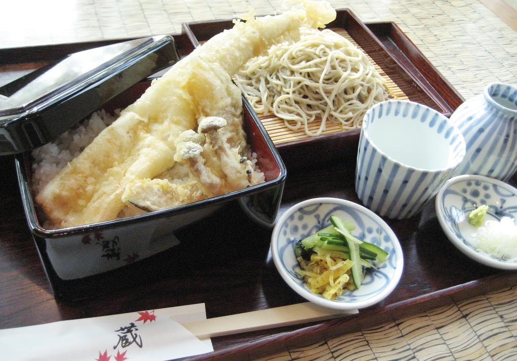 蔵は八ヶ岳産のそば粉を100%使用。つゆも5種類の昆布と削り節をブレンド、天然・無添加。油もヘルシーなこめ油を使うこだわりよう。