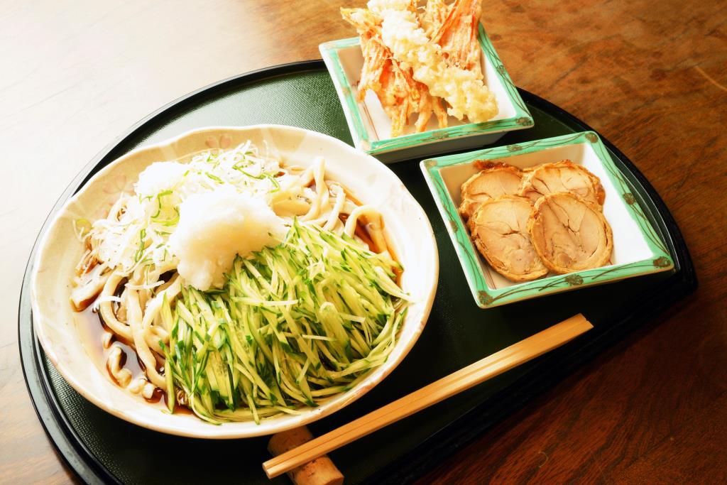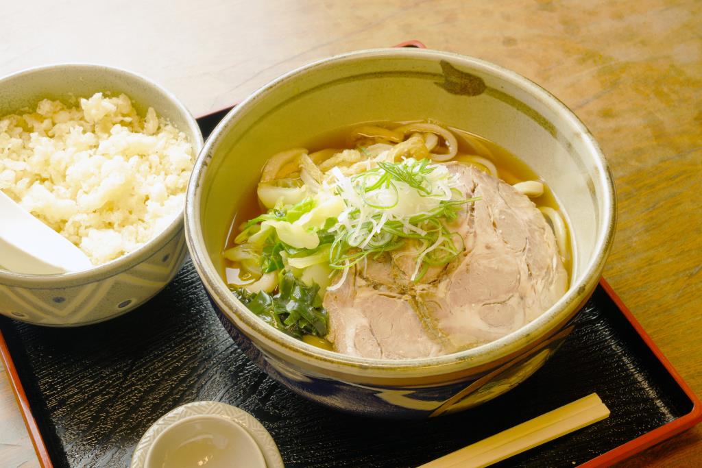 桜井うどんから暖簾わけをしてもらっており、食べ応え抜群の吉田のうどんを味わえる歴史ある店。自家製の米と味噌を使っているので麺もつゆもおいしい。