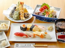 豊洲から仕入れる新鮮で旨い食材を使用した寿司と天ぷらが自慢。
