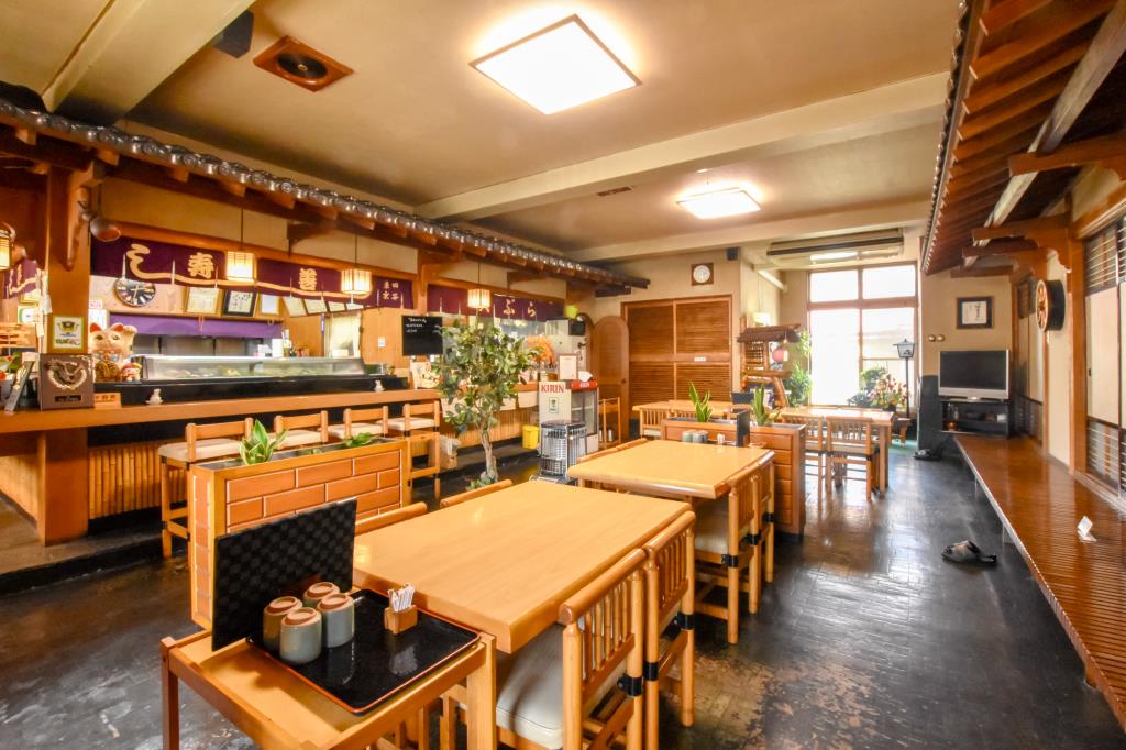 昭和52年創業の老舗寿司・天ぷら専門店「寿司善」は、目の前に富士山が見える絶好のフォトスポット。
