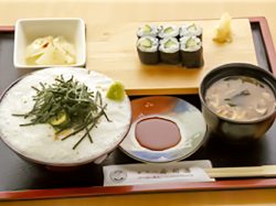 中でも人気は河口湖名物「かっぱめし」。とろろの下にまぐろの漬けを忍ばせているのが寿司善流。