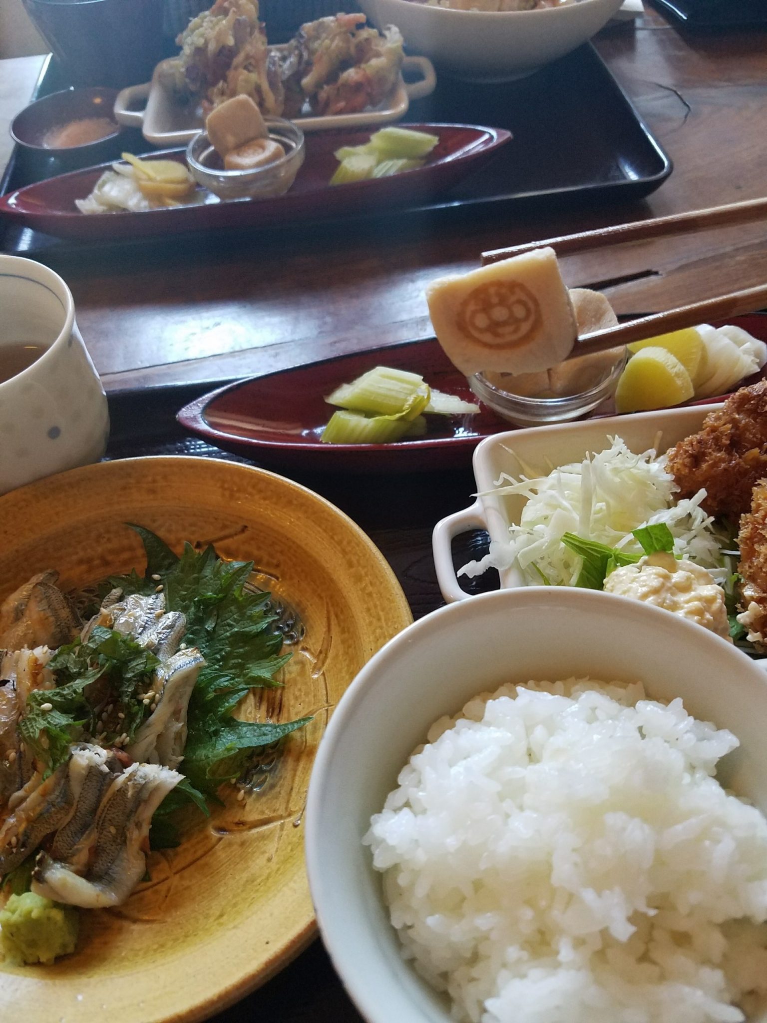 季節のメニューや割とたくさん定食セットの種類があるにも関わらず毎回同じメニューを頼んでしまいます。名前は覚えてないですが、マグロの韓国風なんちゃらとエビ南蛮だったような。ボリュームもあり、定食を頼むと食後にミルクアイスとお茶が付くのも嬉しいです。
