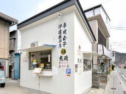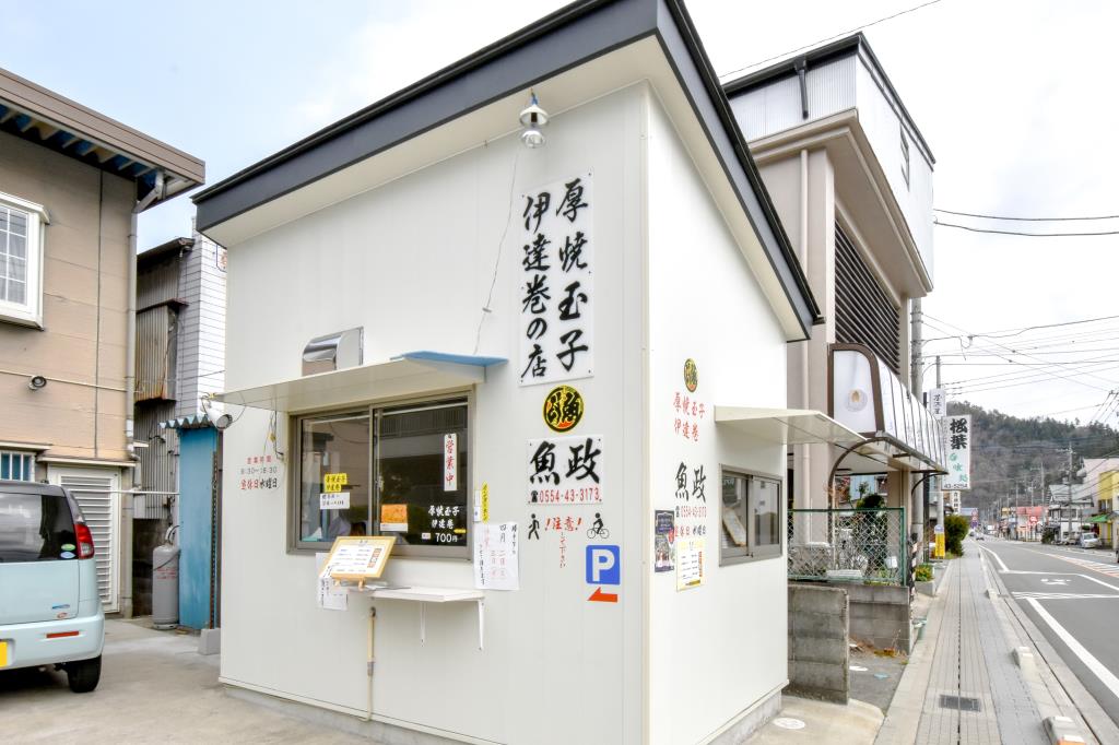 都留にある玉子焼き専門店「魚政」。注文のための小窓を開けると、はつらつとした笑顔の店主が迎えてくれる。