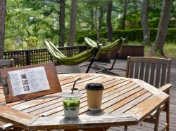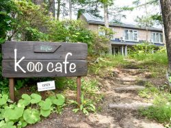 旅舎つきあかりに併設するkoo cafeは、山中湖畔から少し離れたたっぷりの自然を感じられる森の中に2019年春、OPEN。