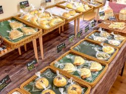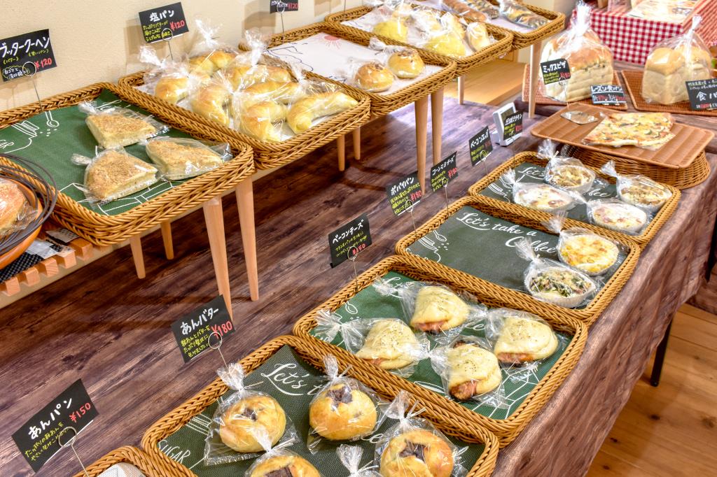 国産小麦と天然酵母を使用したこだわりの手作りパンが並ぶ。手間ひまかけた人気のパンは、ふわっふわのやさしい味わいでとってもリーズナブル。