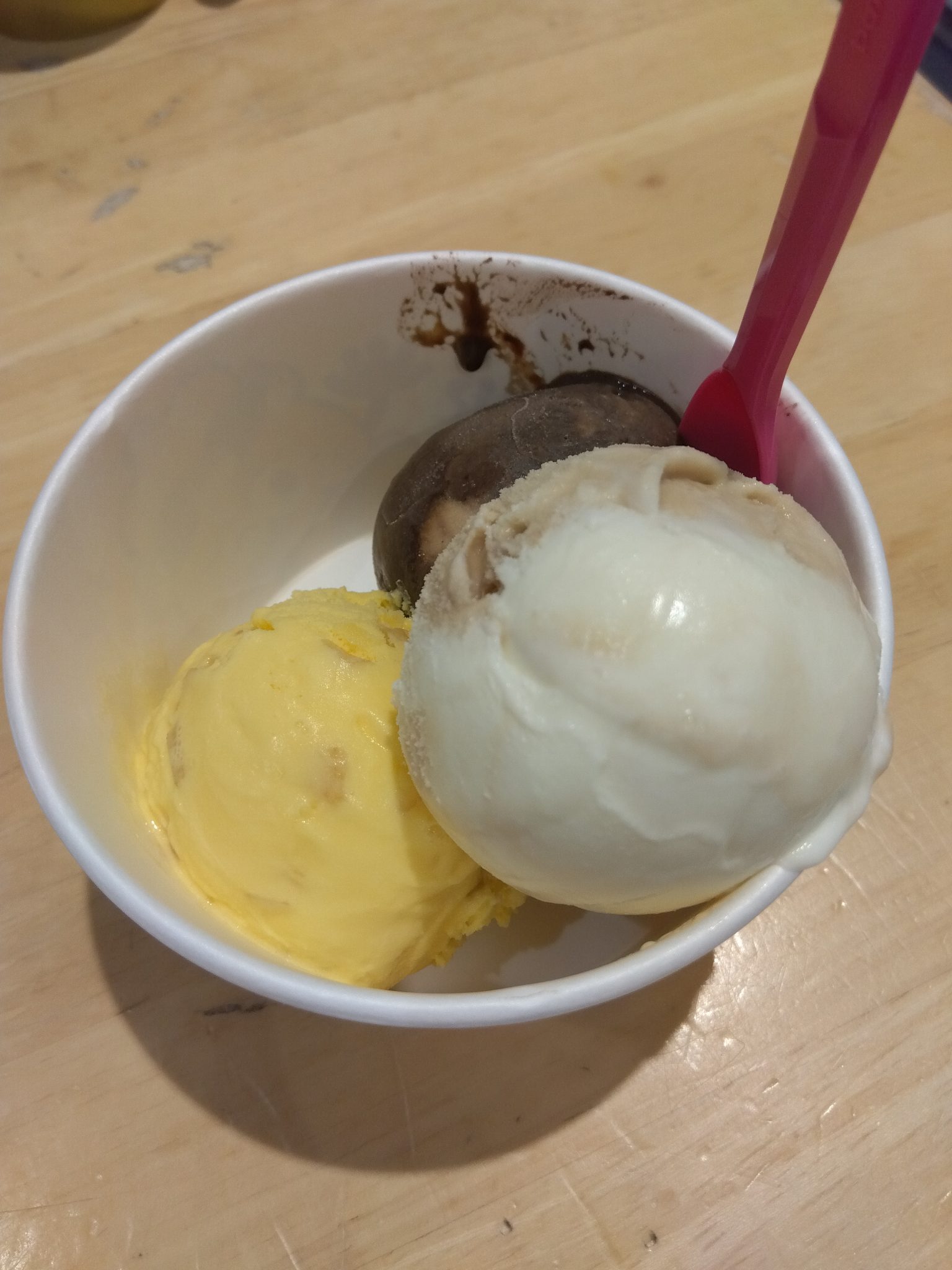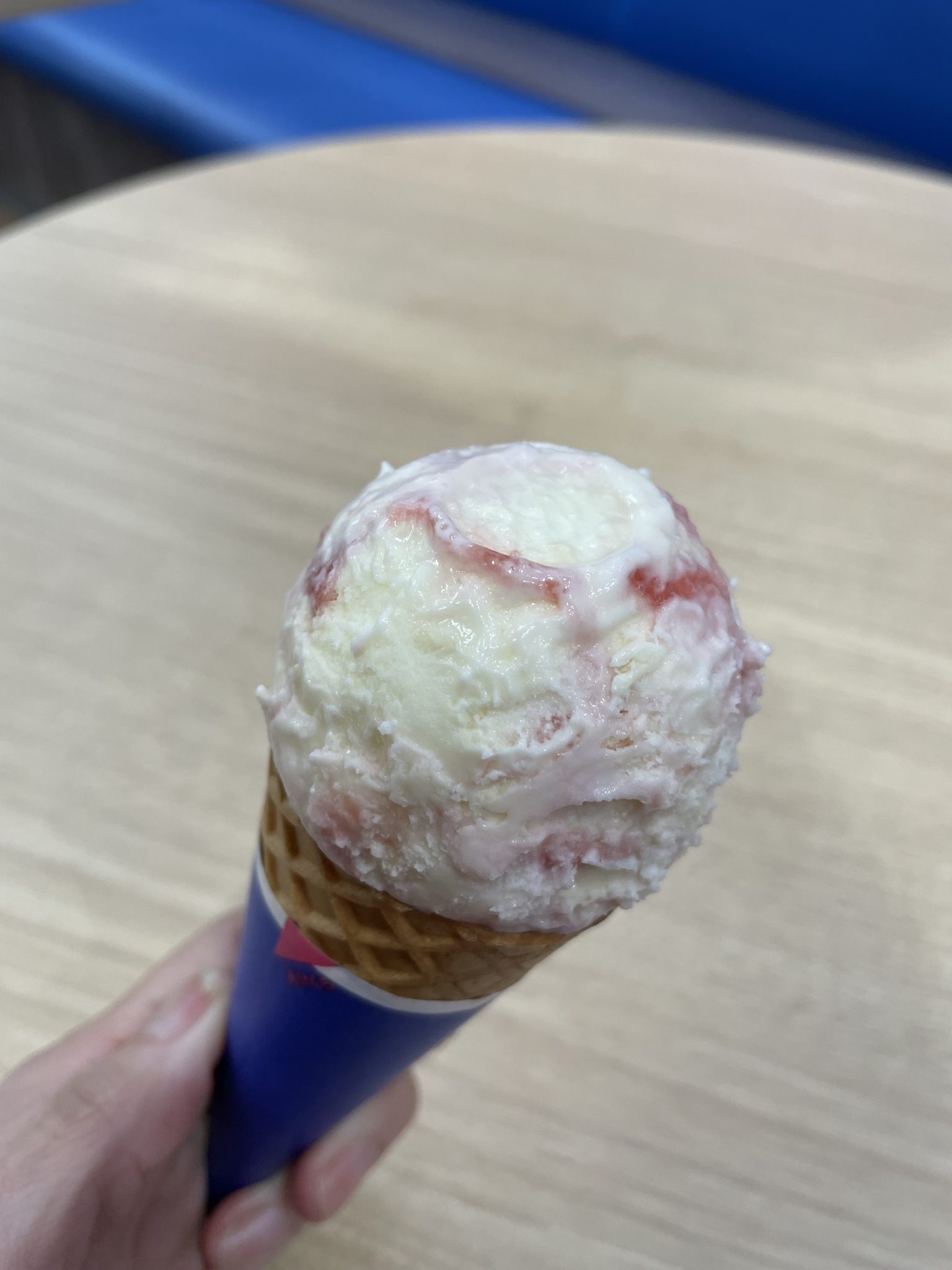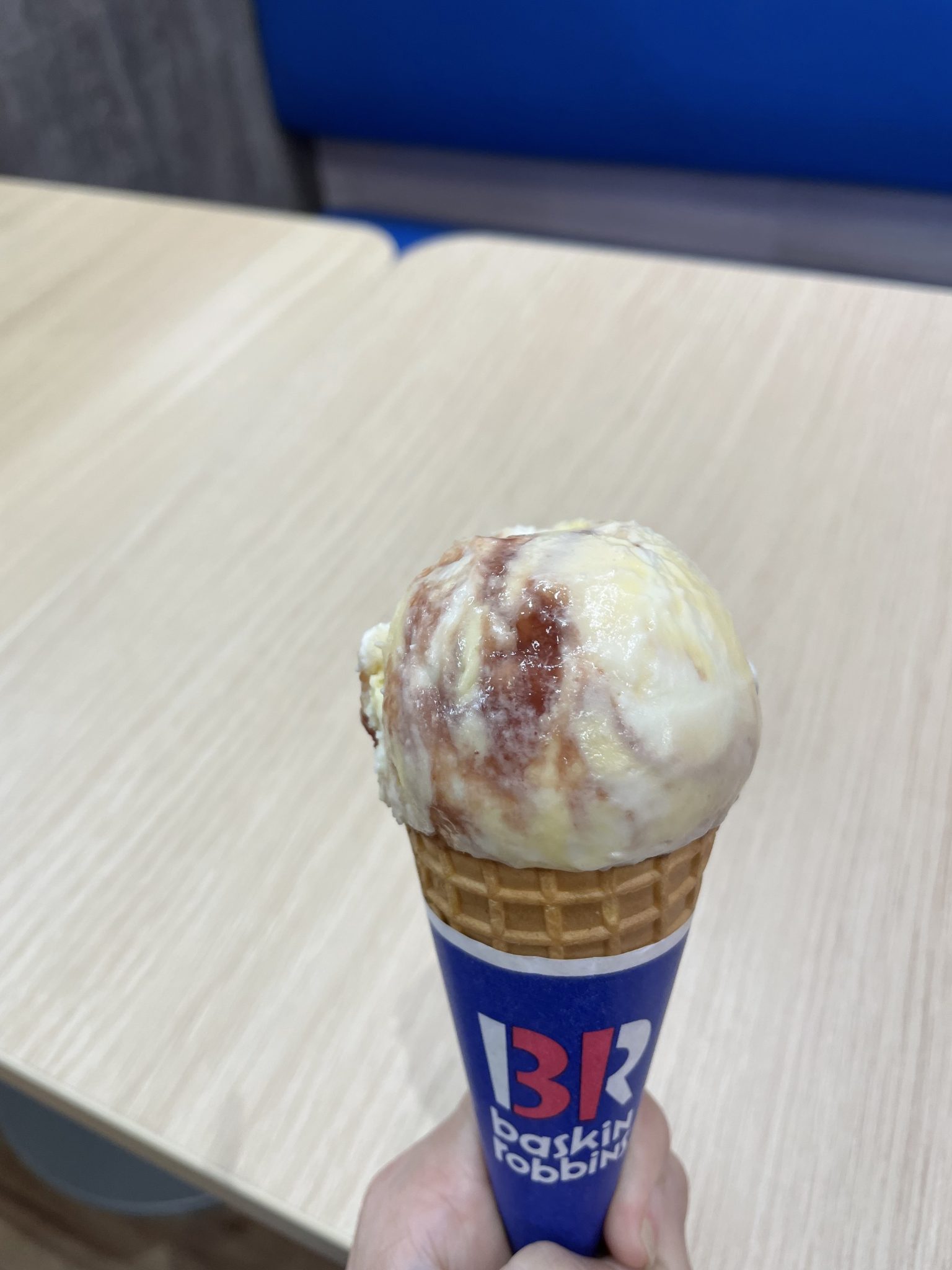 サンデーが限定で700円で販売していると掲示があったので、初めてサンデーを注文してみました。器がハロウィンのままでしたが、そこは気にせず頂くことにしました。アイスは2つ選べたので、期間限定の「メローバターアーモンドクッキー」「ベリーミーツピスタチオ」を選びました。アーモンドクッキーの方は、塩味が効いて、クッキーの食感が良かったです。ピスタチオの方は風味が良かったです。