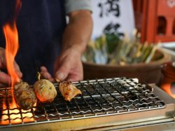 目の前で調理する炭火焼きの臨場感が楽しめる魅力も。その香りに誘われ、注文せずにはいられない!