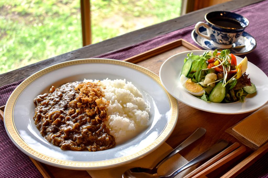 ランチは自家製のフルーツピューレを加えてじっくりコトコト煮込んだ甘く優しい辛さのカレーや、甘い粕漬けをメインにしたメニューなどから選択。