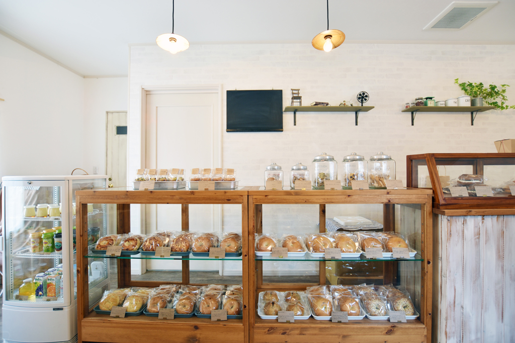 ゆったりとした時間が流れる中、オーナーがその日の気分や天候でショーケースに並ぶベーグルを焼く気まぐれなちいさなお店。
