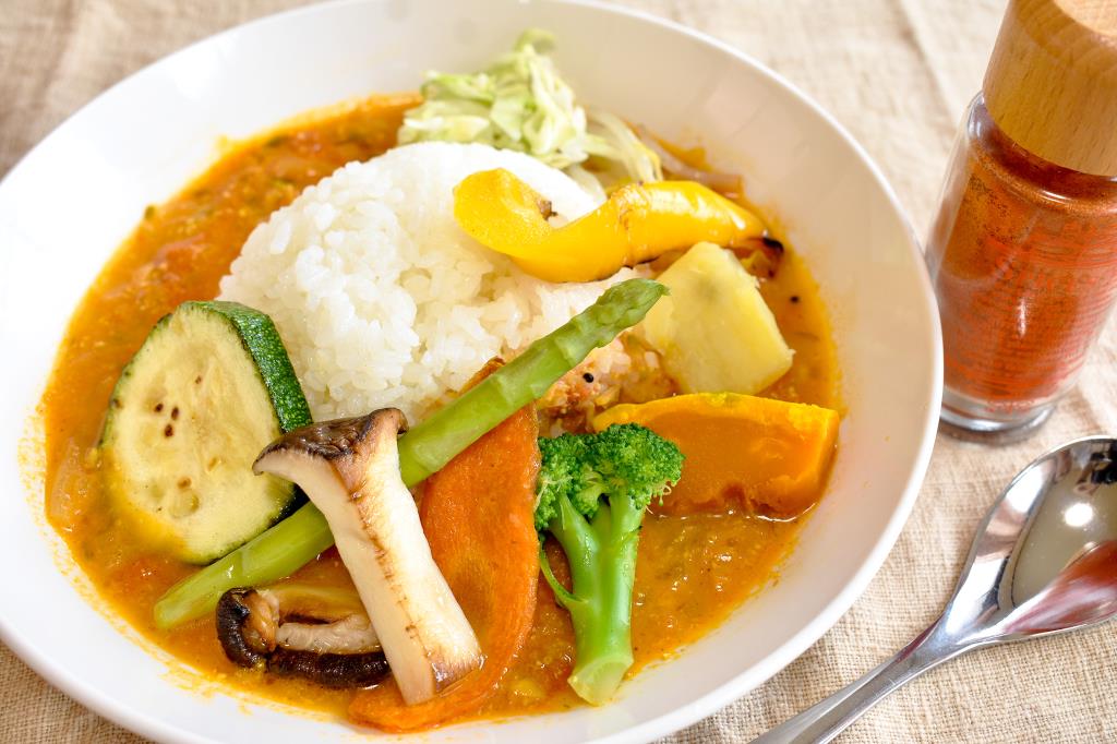 野菜をたっぷり使用した身体にやさしい本格スパイスカレーは、ベジタリアン対応でテイクアウトも可能。