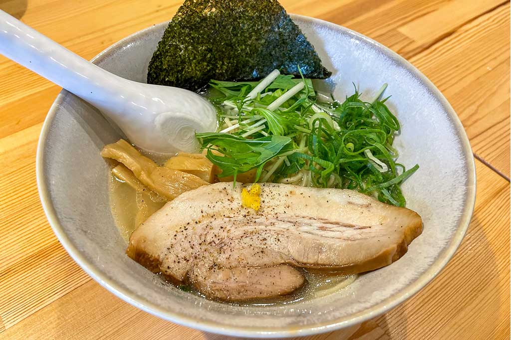 牛骨でとったスープをベースに、塩ダレの「白」と醤油と貝だしの「黒」から選べる。
