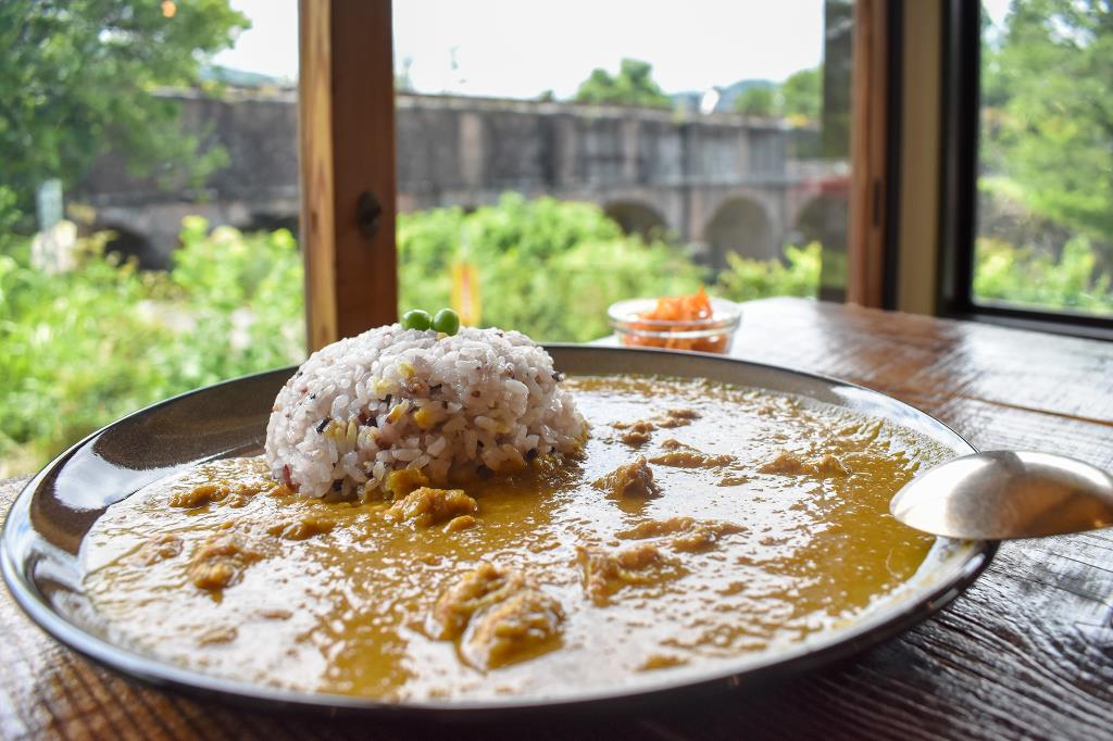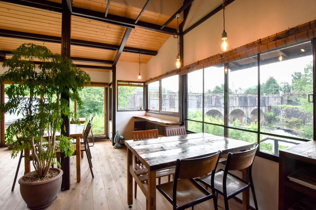 都留市の落合水路橋(通称、眼鏡橋)近くに佇むカフェ「織水 orimizu」。