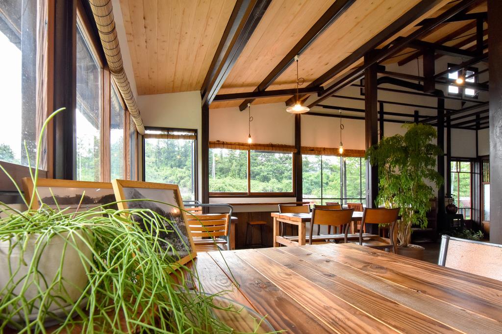 落ち着いた雰囲気の店内からは絶景を見渡すことができる。そのロケーション目当てに県内外から足を運ぶ人も多い。