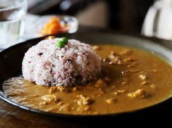 じっくりと煮込んだこだわりのカレーは、スパイスのじわじわとした辛さがやみつきになりそう。